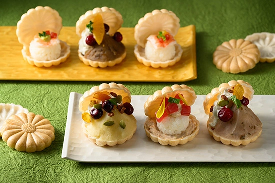 見た目にも美しい最中の中に、彩り豊かな寿司の具材をぎゅっと詰め込んだ「もなかずし」。サクッと香ばしい最中の皮と、酢飯や旬の具材の絶妙なハーモニーが楽しめる、新感覚の一品です。