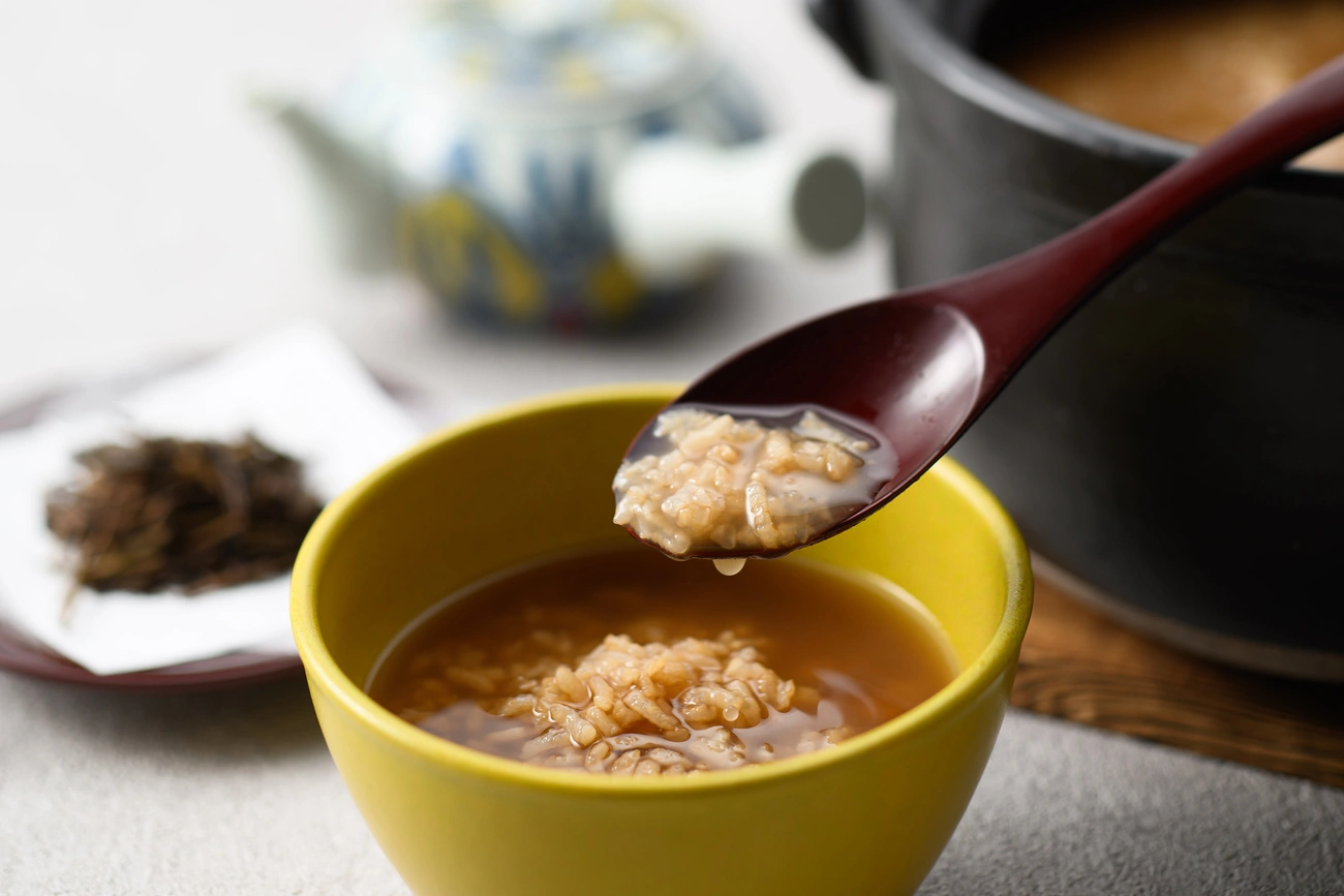 ほうじ茶の暖かく優しい香りが広がる、古くから親しまれてきた奈良の「茶粥」は、煮出したほうじ茶の中に冷やごはんを入れて炊いたもの。さらっと食べれるので、朝におすすめの一品です。