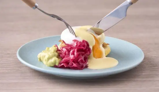 マルシェの屋台で大きな鍋からサーブされるような、じっくり煮込まれ深い旨みが感じられ、ほろりとほどける柔らかさのプルドポーク。仕上げにポーチドエッグを乗せ、チーズソースをかけて提供します。お好みで、ワカモレディップやレッドキャベツとビーツのラペを加え、味の変化をお楽しみいただけます。